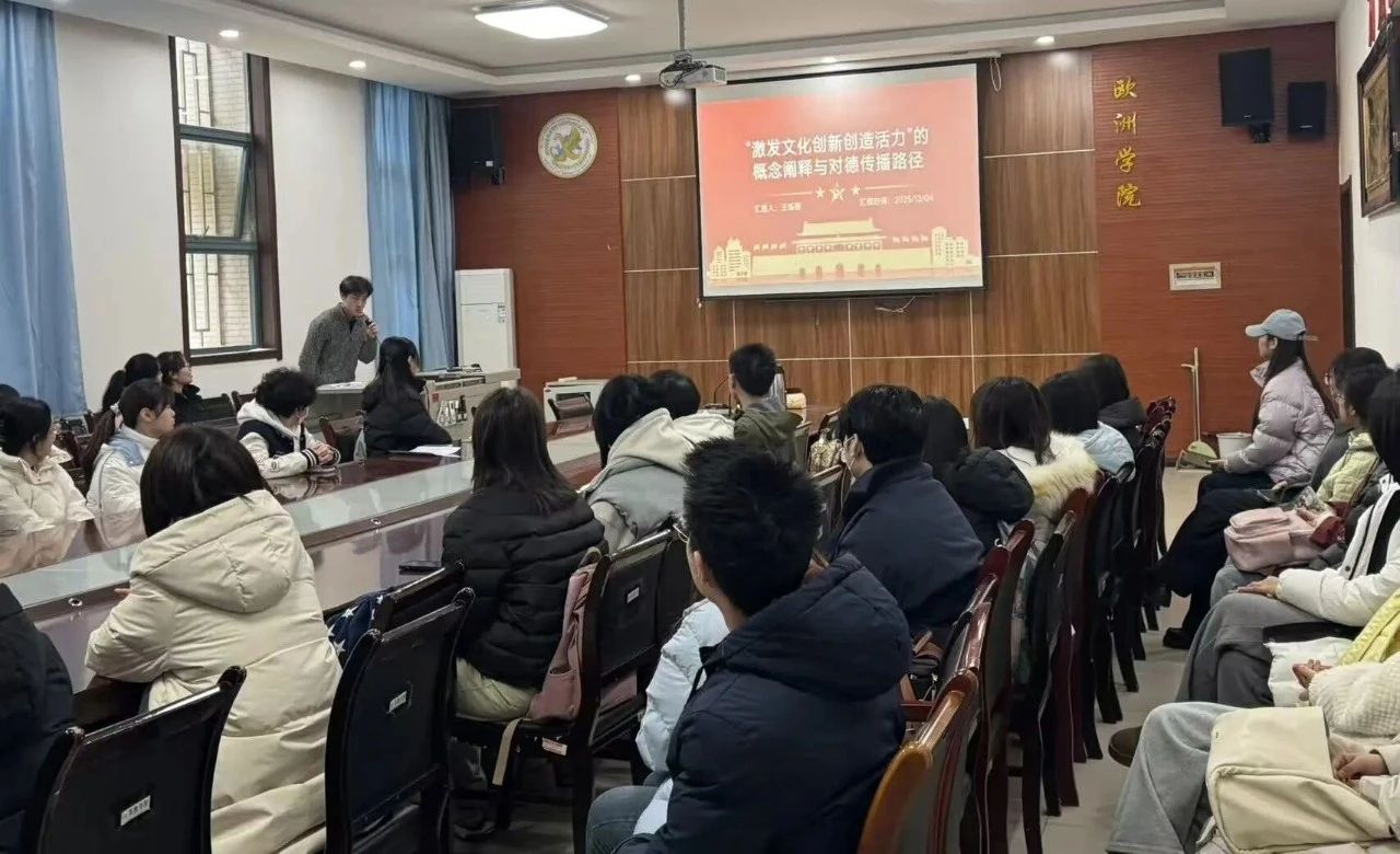 12月17日,韩成竺、王烁程分别以“以推动高质量发展为主题,因地制宜发展新质生产力”和“‘激发文化创新创造活力’的概念阐释与对德传播路径”为题在欧洲学院进行微宣讲。