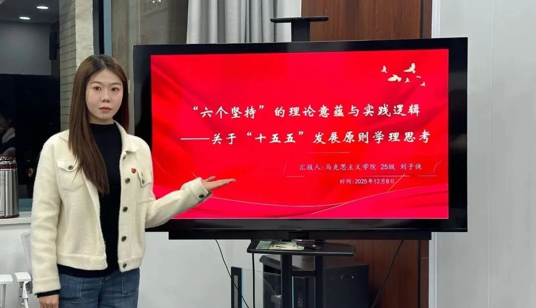 12月8日,刘子侠以“‘六个坚持’的理论意蕴与实践逻辑——关于‘十五五’发展原则学理思考”为主题在经济金融学院求真力行学生党建工作室进行微宣讲。