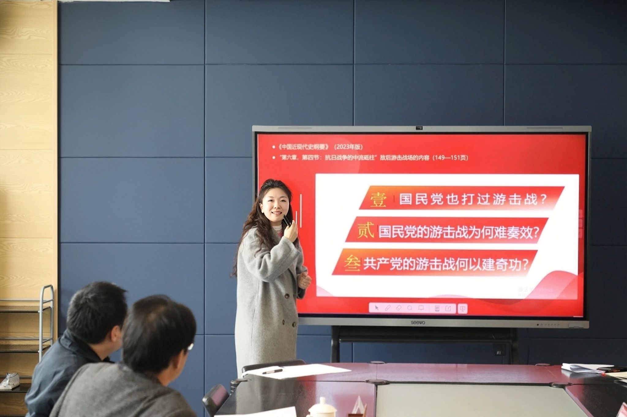 曲江第三中学校长崔平,我院党委书记、大中小学思政课一体化研究中心主任刘小勇出席,曲江第三中学政教处副主任张博,我院毛泽东思想和中国特色社会主义理论体系概论教研室主任、2023年陕西思政课大练兵标兵贾超老师,中国近现代史纲要教研室教师、2024年陕西思政课大练兵特等奖获得者李彩玲老师以及曲江三中道德与法治学科全体教师和我校教育硕士(学科思政)、马克思主义理论硕士研究生参与研讨。研讨会由曲江第三中学校办副主任陈然主持。