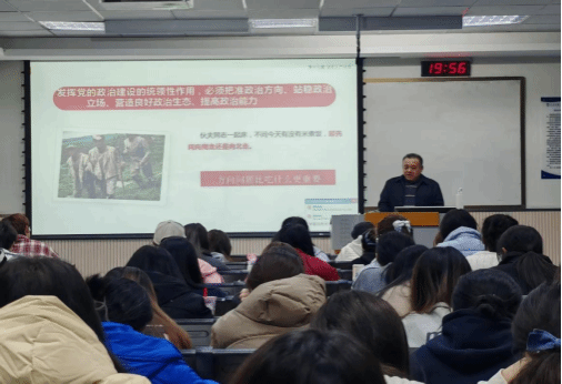 为深入贯彻习近平总书记对学校思政课建设作出重要指示精神,推动学校思想政治理论课教学改革与创新,加强学校思想政治理论课内涵式建设,2025年11月26日晚,学校党委副书记、纪委书记姜劲波为中国语言文学学院、旅游学院·人工智能学院的2024级部分本科生讲授“全面从严治党”的专题思政课。